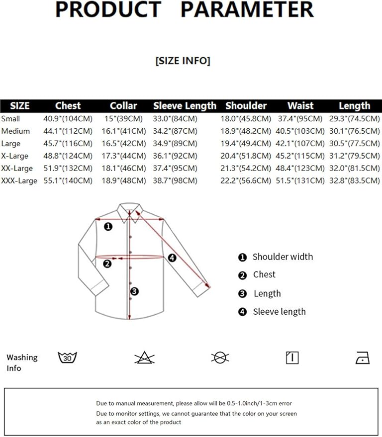 - Formal Dress Shirt for Men/Various Colors/Fitted/Please note that body builds vary by person, therefore, detailed size information should be reviewed